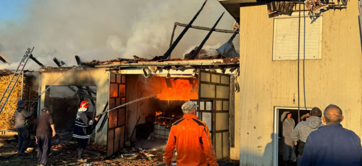 FOTO. Incendiu într-o gospodărie din județ. Acoperișul casei și o anexă, cuprinse de flăcări
