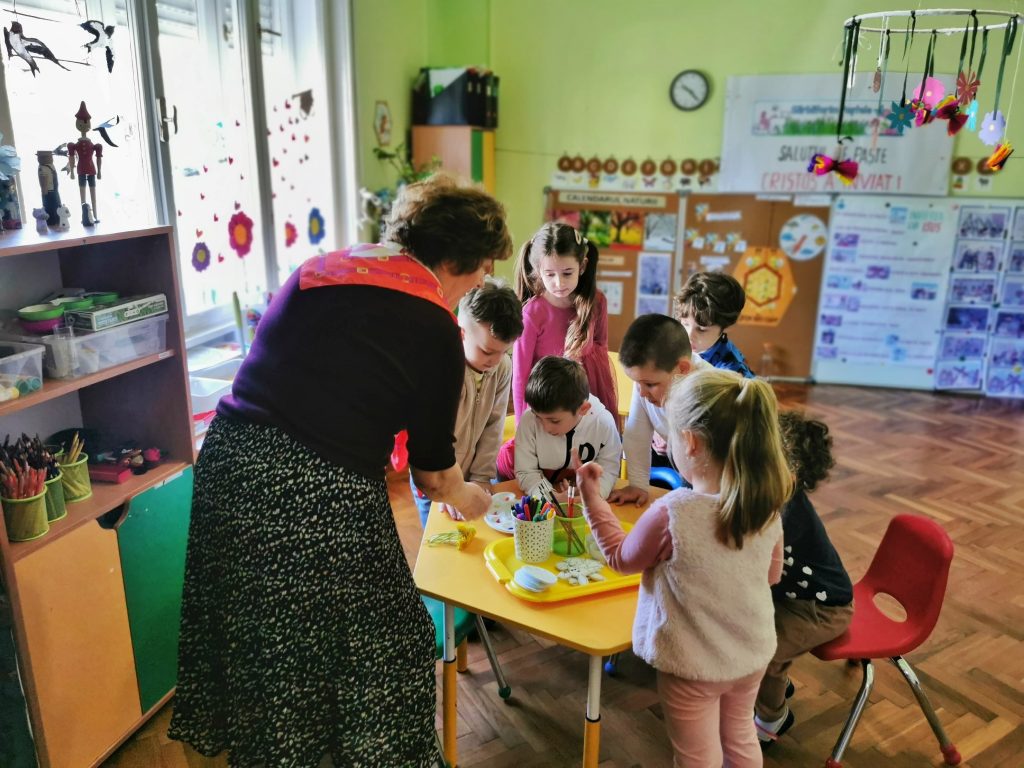 Dezvoltarea copiilor este asigurată de un profesor pentru învățământ preșcolar cu mare experiență, Leontina Ghiţ. Ea este grad didactic I, obţinând distincția ,,Meritul pentru învățământ, clasa III, a președintelui României” pentru 45 de ani vechime în învățământ. Este membru fondator al asociațiilor “Părinți pentru copii” şi “Sens – Societatea Educatoarelor Novatoare Sătmărene”.