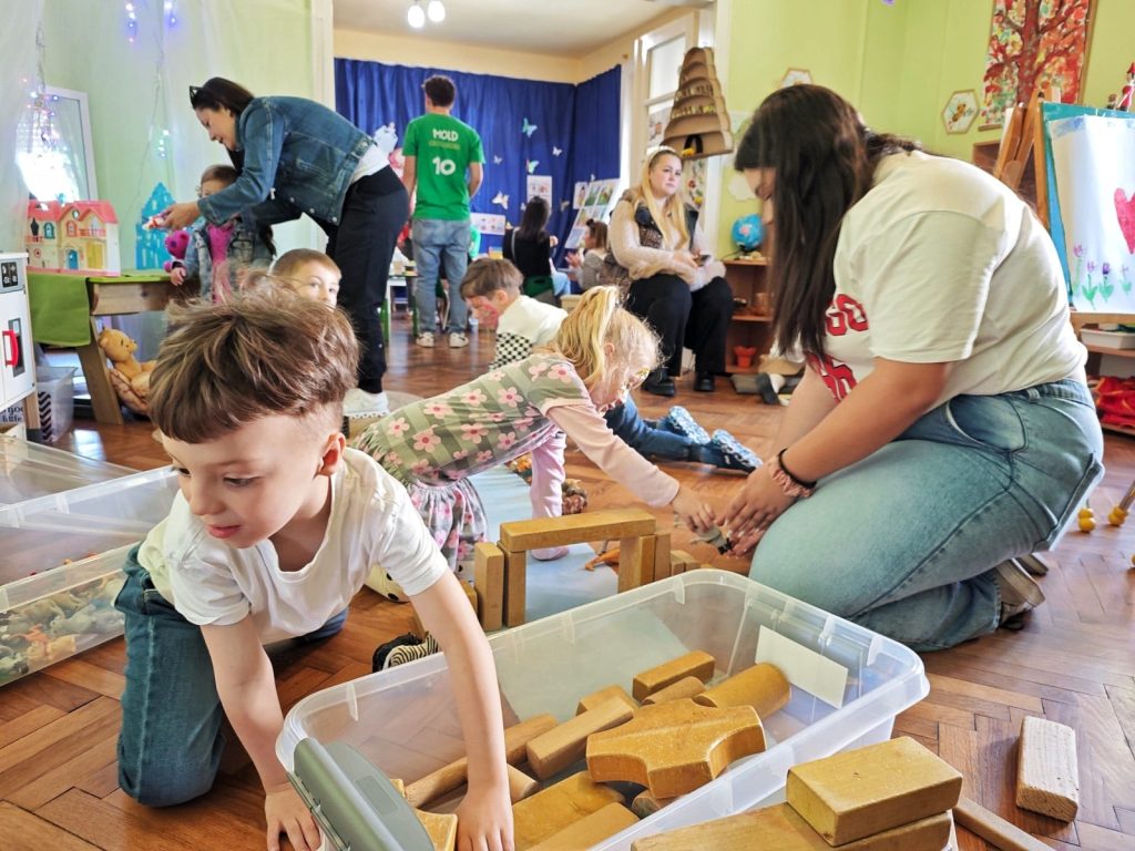 Bucuria a fost la cote maxime atât în interiorul grădiniței, cât și în curtea generoasă. După o sesiune de joacă și picturi pe față, copiii s-au îndreptat spre leagăne, tobogane și celelalte facilități de joacă din exterior, profitând de vremea frumoasă pentru a se distra în aer liber. Râsetele lor au umplut atmosfera, creând un tablou plin de viață. În același timp, părinții și bunicii au explorat incinta grădiniței, materialele didactice stimulative puse la dispoziția copiilor și discutând cu personalul calificat, printre care s-a numărat și profesorul pentru învățământ preșcolar cu o vastă experiență, Leontina Ghiţ.
