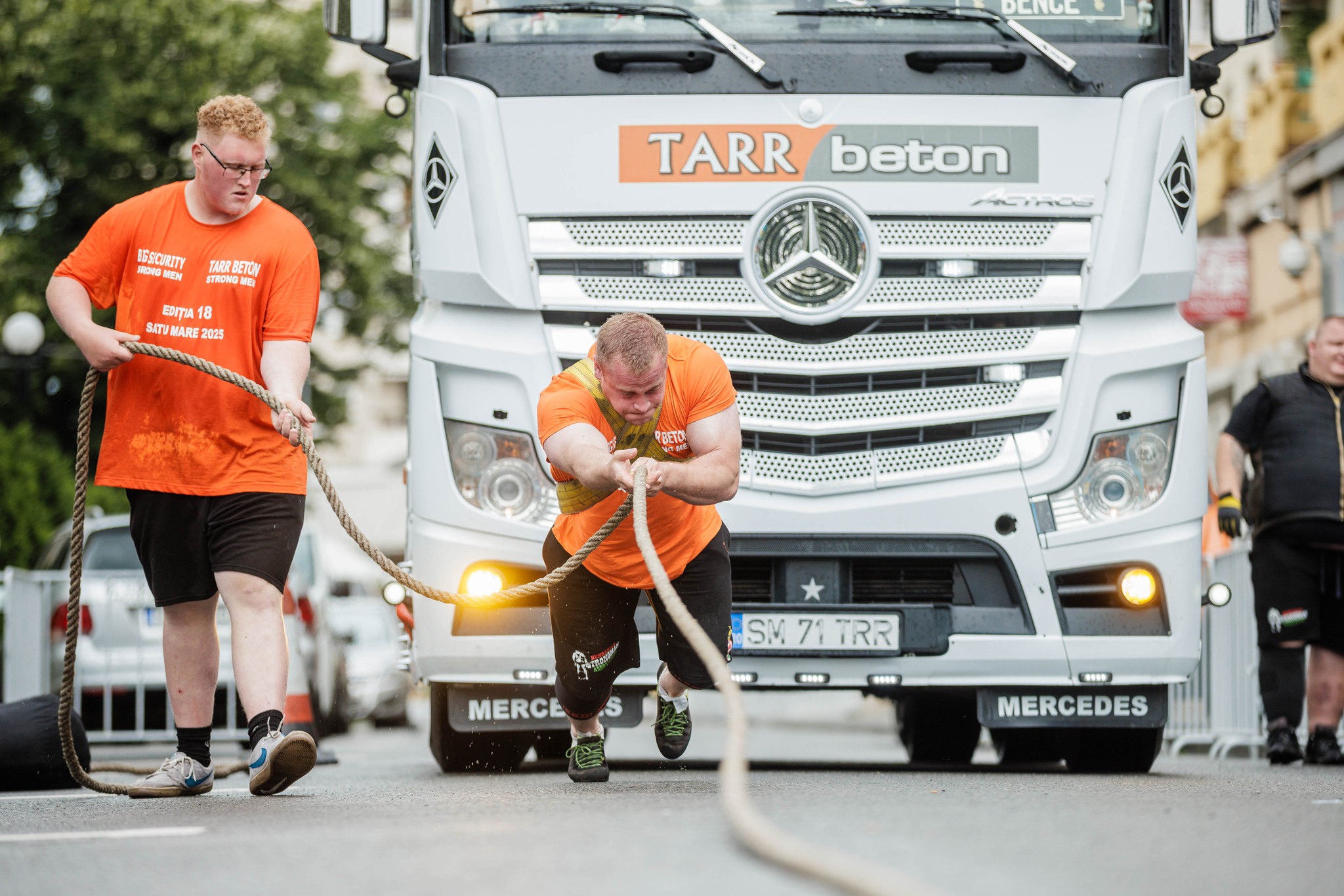 Strongest Man. Zilele Orașului Satu Mare au adus nu doar muzică și voie bună, ci și forță brută, adrenalină și spectacol pur în cadrul concursului internațional Strongest Man – Cupa Big Security, desfășurat duminică în faţa Primăriei.