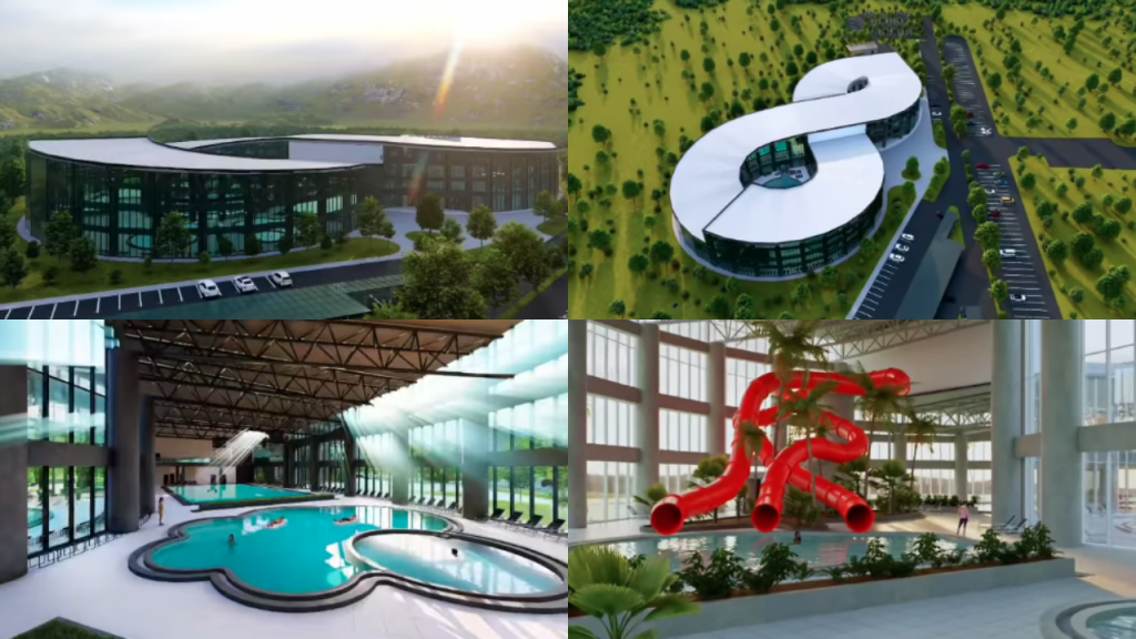 una cu parter și etaj, care va găzdui șase bazine interioare și o zonă SPA;