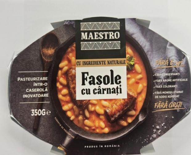 • Denumire: Fasole cu cârnați 350 g Maestro;