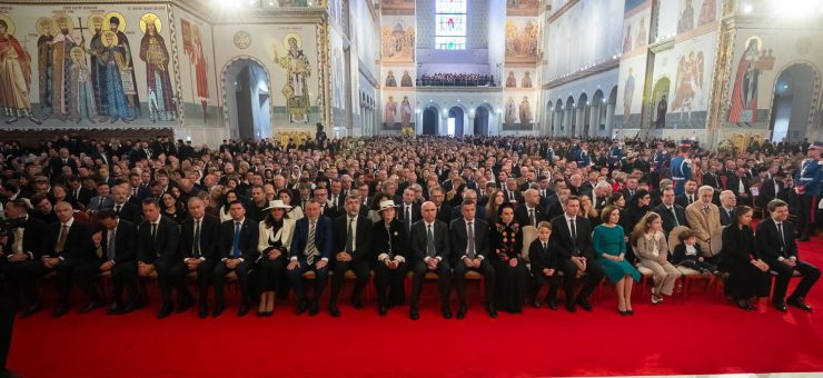 Preşedintele Nicuşor Dan, alături de familie, preşedinta Republicii Moldova, Maia Sandu, premierul Ilie Bolojan, preşedinţii celor două Camere ale Parlamentului, foştii preşedinţi Emil Constantinescu şi Traian Băsescu, Principesa Margareta şi Principele Radu au asistat la inaugurarea Catedralei Naţionale.