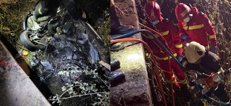 La sosirea forțelor de intervenție, autoturismul a fost găsit răsturnat într-un șanț cu apă, pe plafon, în condiții extrem de dificile pentru acces și intervenție.