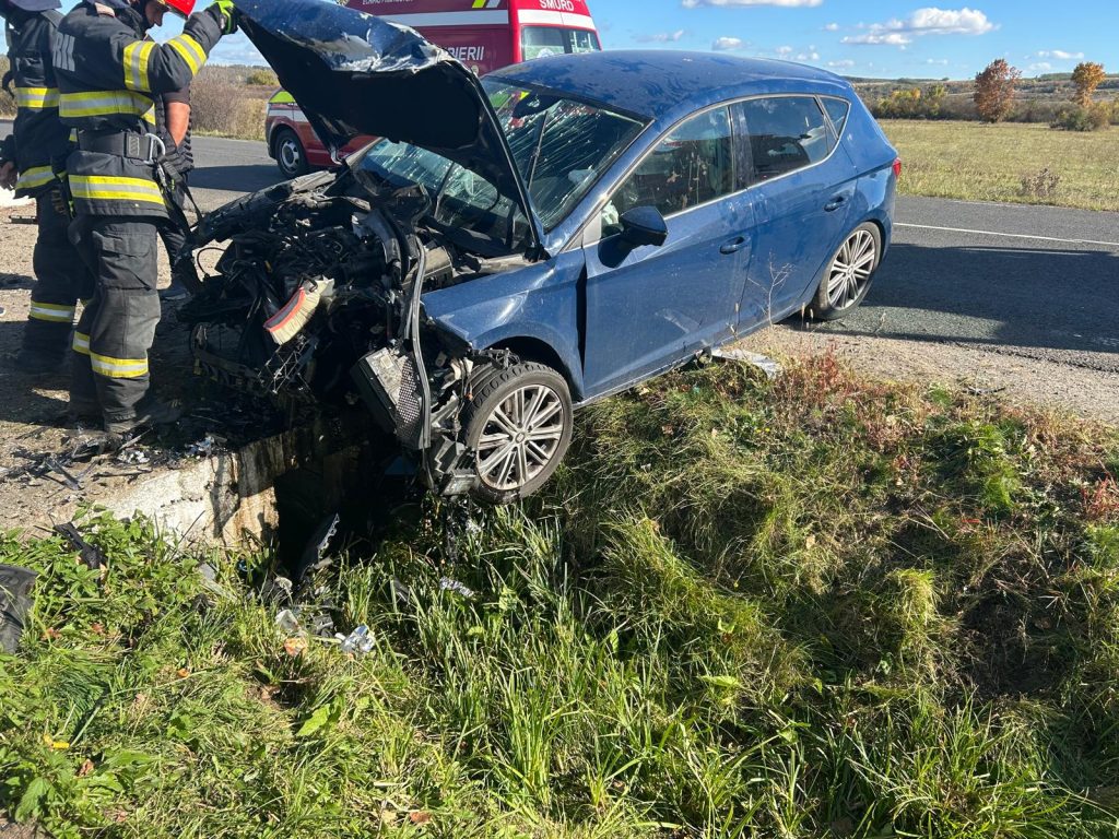 FOTO. Cum s-a produs accidentul din Supur: o femeie a intrat cu mașina într-un cap de pod. Ce spune poliția