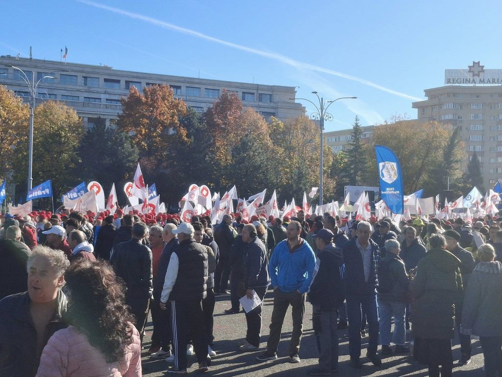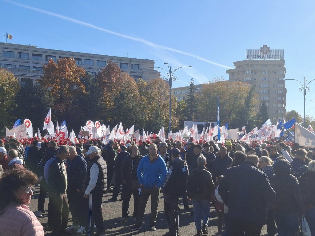 Sindicalişti din patru confederaţii sindicale participă, miercuri, la un protest în Piaţa Victoriei, împotriva măsurilor de austeritate ale guvernului. În faţa Guvernului protestează reprezentanţi ai Confederaţiei Sindicatelor Democratice din România (CSDR), Confederaţiei Sindicale „Cartel Alfa”, CNSLR-Frăţia şi ai Confederaţiei Sindicale Naţională Meridian. La protest sunt prezenți mii de oameni, inclusiv sătmăreni.