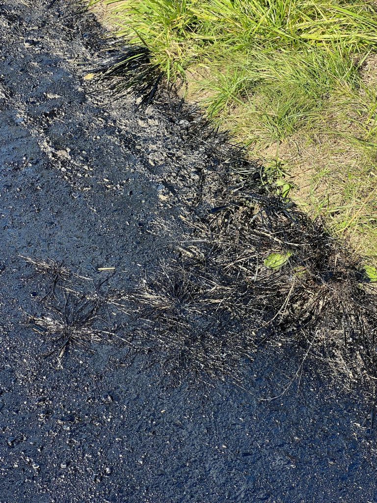 Imaginile surprinse la fața locului arată asfalt turnat direct peste iarbă, fără o fundație vizibilă, iar în unele zone calitatea stratului de bază pare îndoielnică. Mai mult, pista nu are delimitare față de carosabil, ceea ce contravine normelor tehnice.