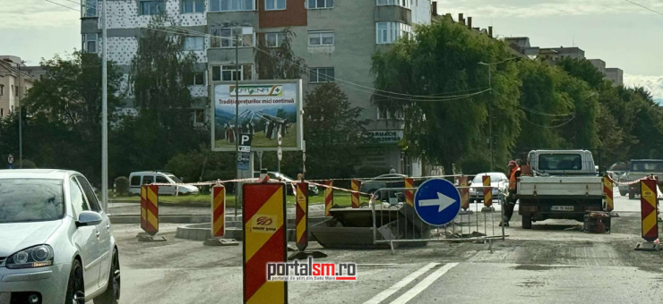 Se construiește un nou sens giratoriu în municipiul Satu Mare. Lucrările sunt în toi, iar circulația în zonă este ușor îngreunată.