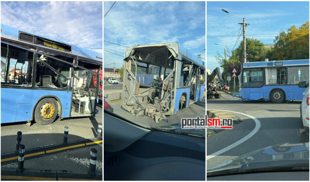 FOTO. Surpriză în trafic! Un autobuz distrus a fost surprins, miercuri, pe străzile din Satu Mare