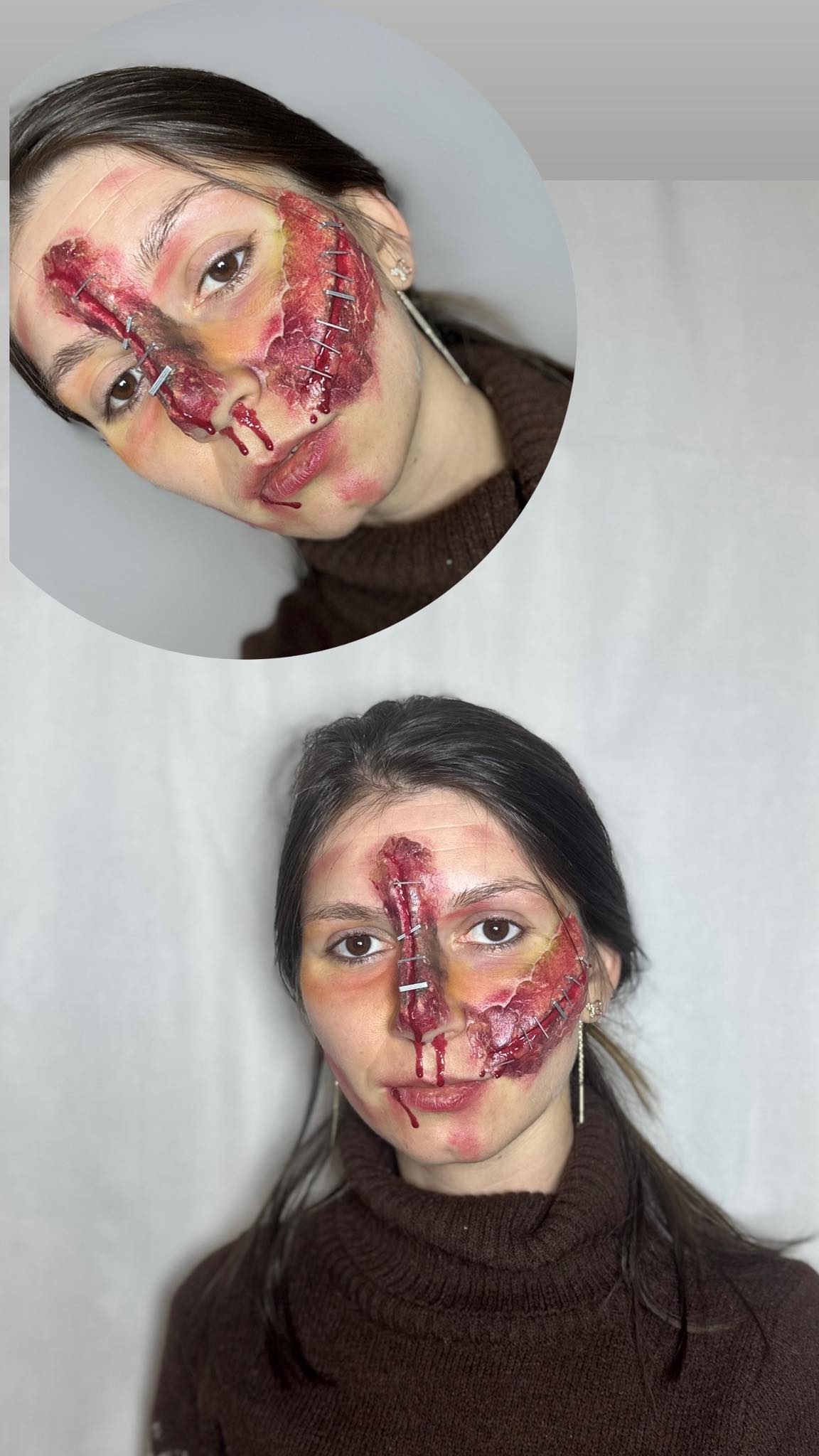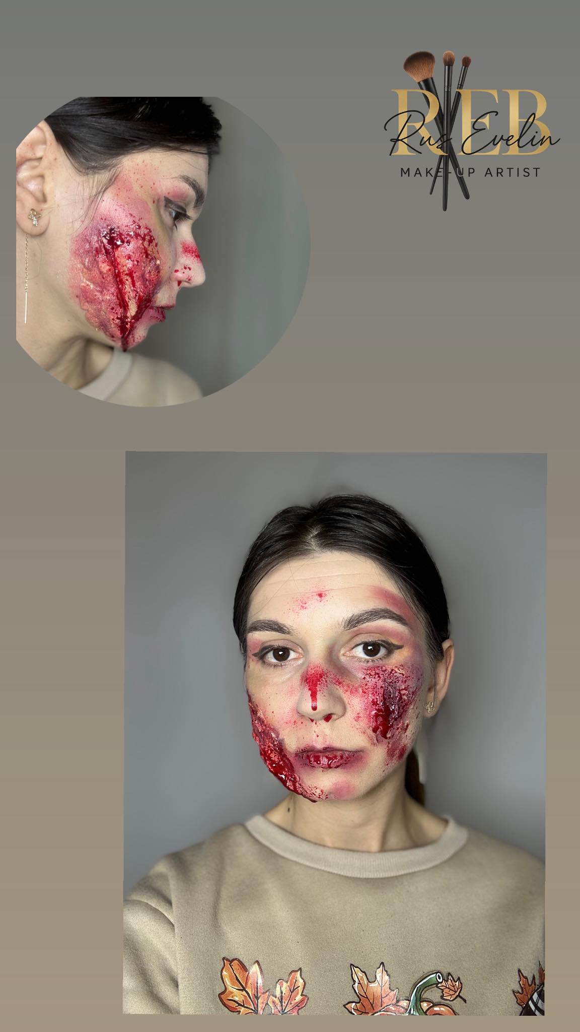 Machiajele cu răni false, cusături, sânge și detalii dramatice sunt realizate cu o atenție la detalii demnă de un platou de film. Totul este însă doar machiaj profesional, aplicat cu măiestrie, iar rezultatul este atât de realist încât cu greu îți dai seama că nu este real.