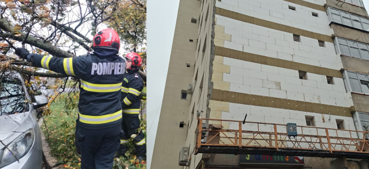 Echipajele ISU intervin la căderi de tablă pe Bulevardul I.C. Brătianu, la un lift exterior aflat în pericol de prăbușire la un bloc cu 10 etaje și la un copac căzut peste o mașină pe strada Dorna. Județul se află sub Cod Galben de vânt, cu rafale ce pot depăși 70 km/h.