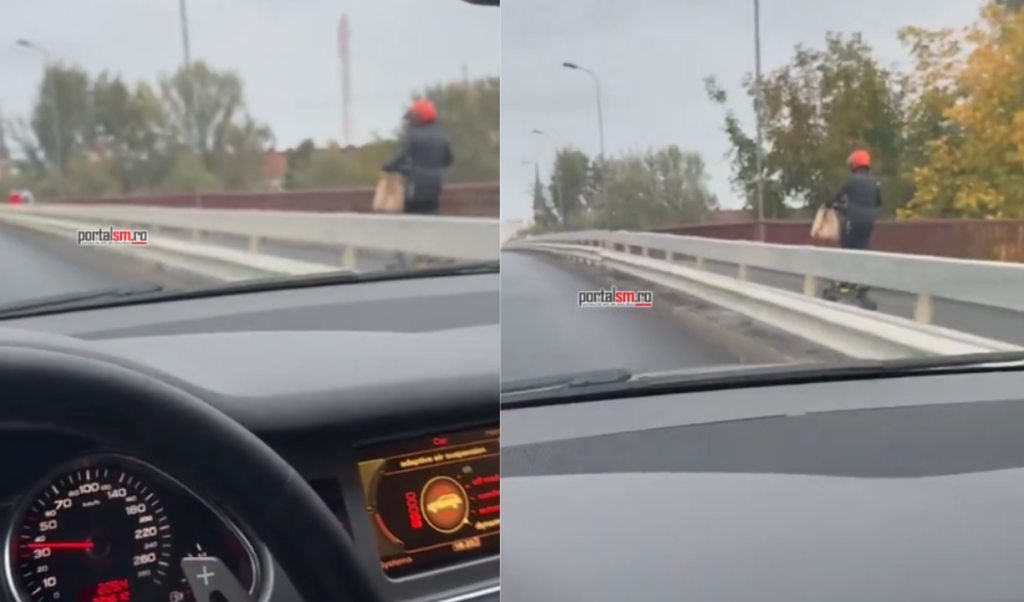 Un adolescent pe trotinetă și-a luat viteză pe podul Golescu, chiar pe trotuar. Pentru că se grăbea foarte tare, acesta i-a și claxonat pe oameni să se dea la o parte. Imaginile au fost surprinse la sfârșitul săptămânii trecute.