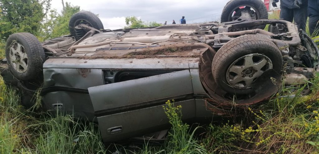A intrat cu vitează în curbă, iar mașina s-a răsturnat. Accident în județul Satu Mare