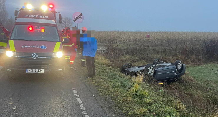 Accident în județul Satu Mare. Mașină răsturnată pe marginea șoselei. În această dimineață, 11 noiembrie, în jurul orei 07.20, dispeceratul ISU Satu Mare a fost anunțat despre producerea unui accident rutier la ieșirea din localitatea Vama, spre Orașu Nou. Conform apelului, un autoturism era răsturnat pe marginea părții carosabile.