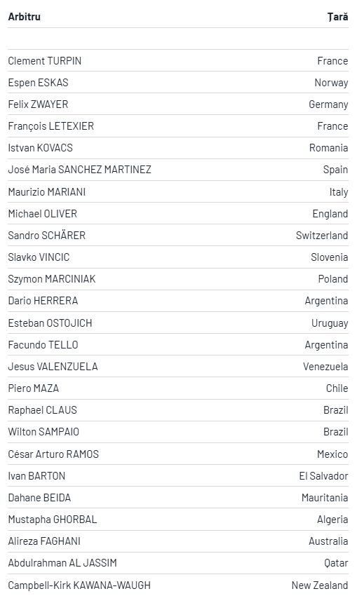 Lista cu nominalizații la premiul de cel mai bun arbitru al lumii: