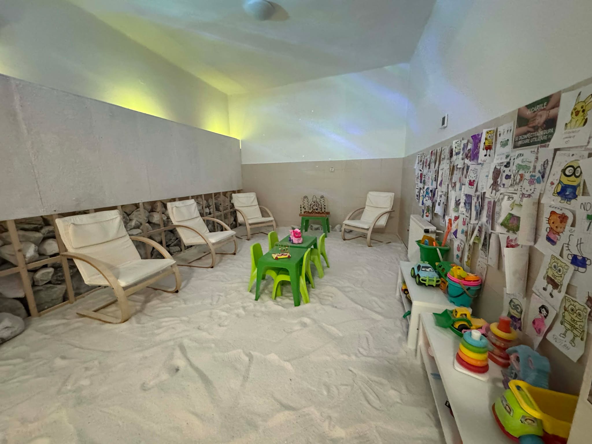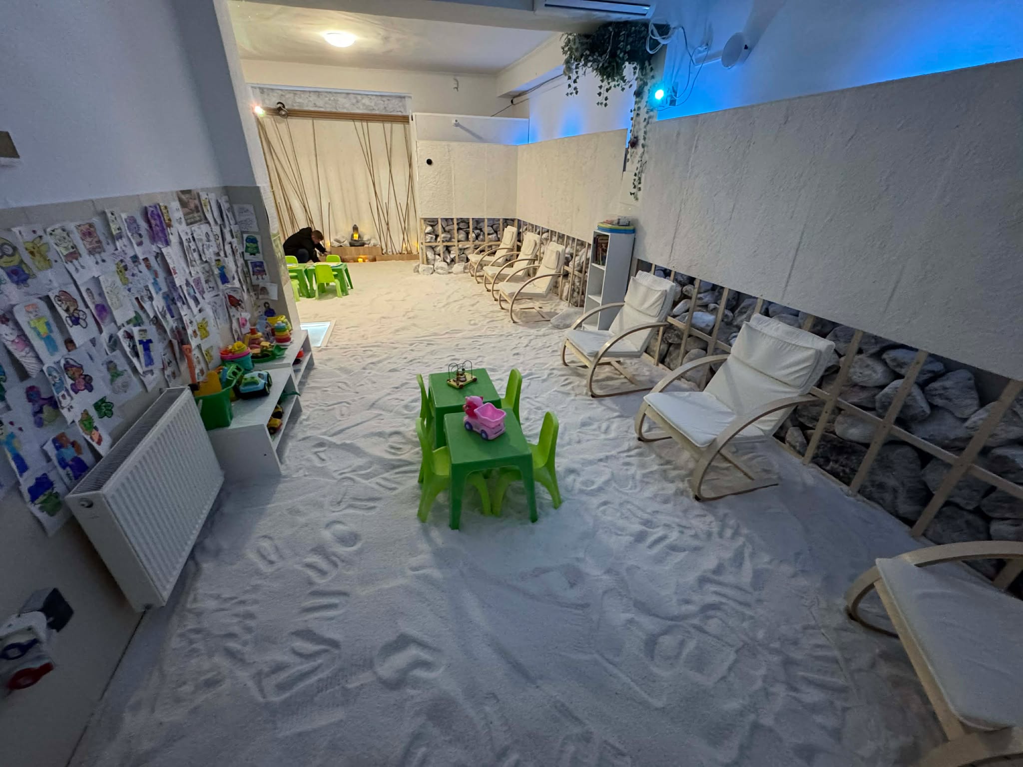 Salina este amenajată modern, cu zone de relaxare pentru adulți, dar și colțuri de joacă pentru copii. Sunt organizate activități educative pentru cei mici, transformând terapia într-o experiență plăcută și interactivă.