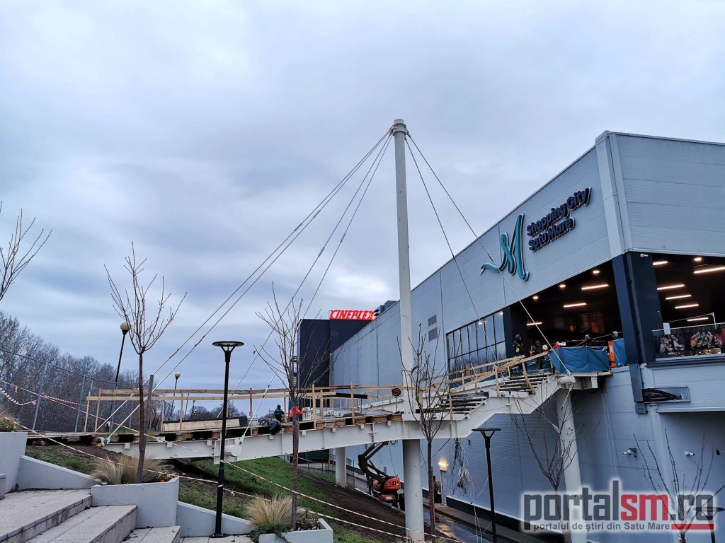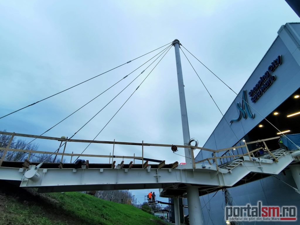 Lucrările la pasarela pietonală care leagă mall-ul Shopping City de digul Someșului continuă, iar structura începe să capete forma finală. Recent, a fost turnată placa de beton armat, marcând o etapă importantă în avansarea șantierului.