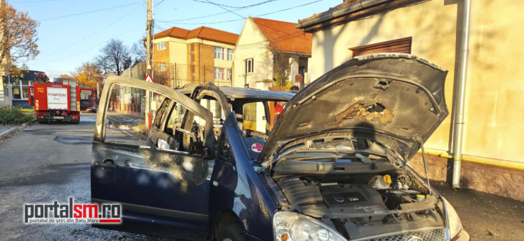 Incendiu în Satu Mare. O mașină a fost făcută scrum pe o stradă din oraș. Focul a izbucnit marți după-masa, 4 noiembrie, iar pompierii au intervenit de urgență.