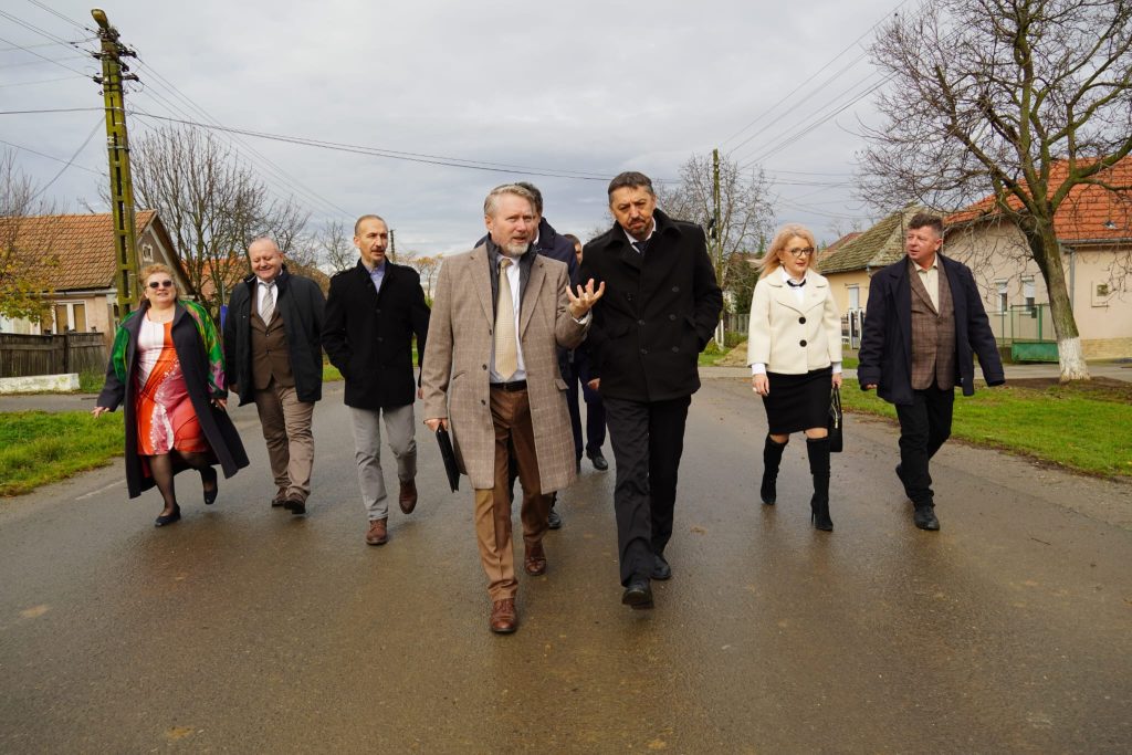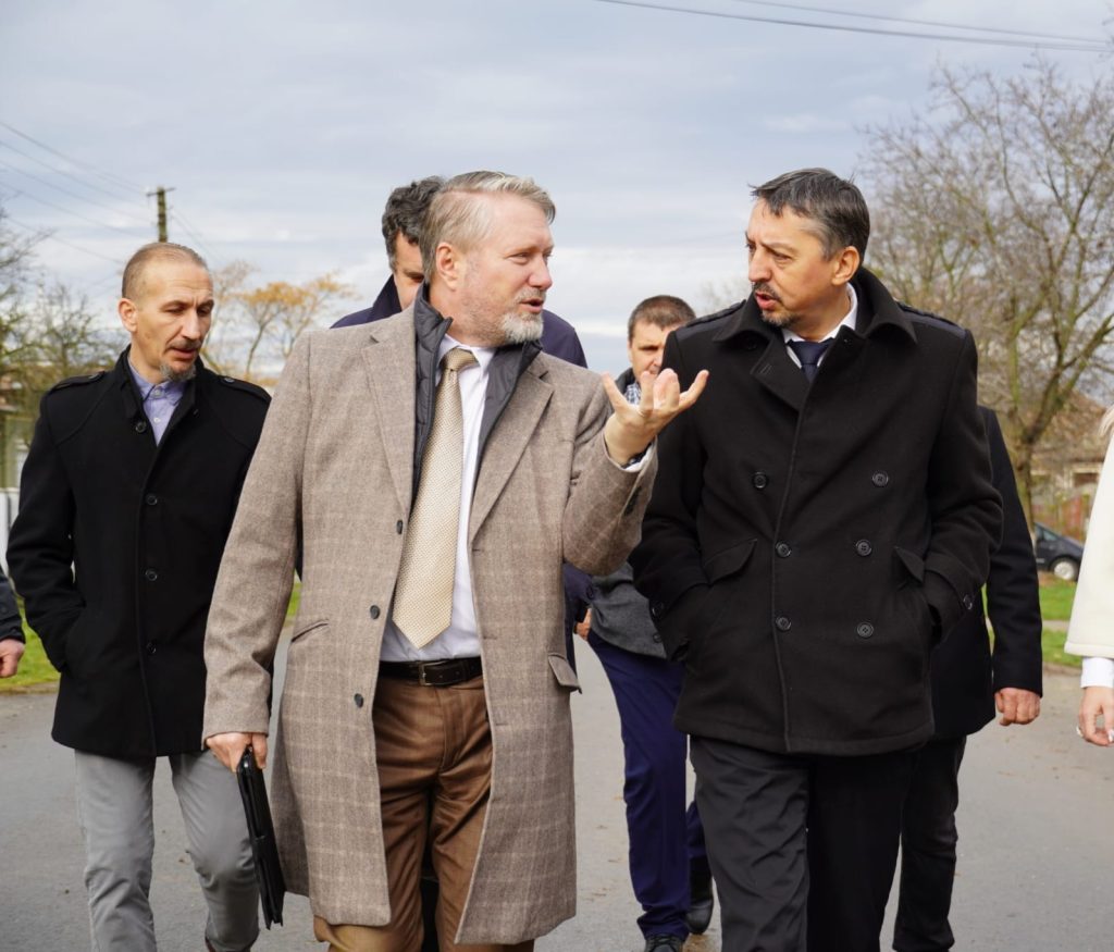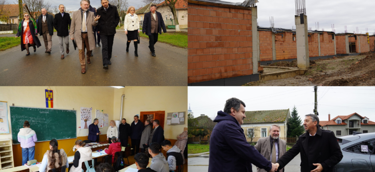 Președintele Consiliului Județean Satu Mare, Pataki Csaba, l-a însoțit astăzi pe ministrul Educației, Daniel David, într-o vizită pe șantierul noii școli din localitatea Pir. Construcția unității de învățământ este finanțată de Ministerul Dezvoltării prin Compania Națională de Investiții (CNI).