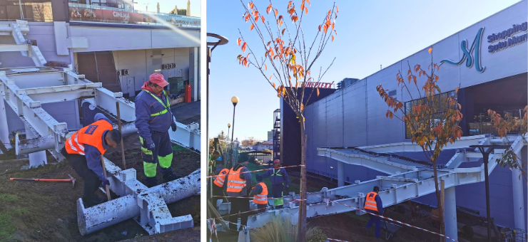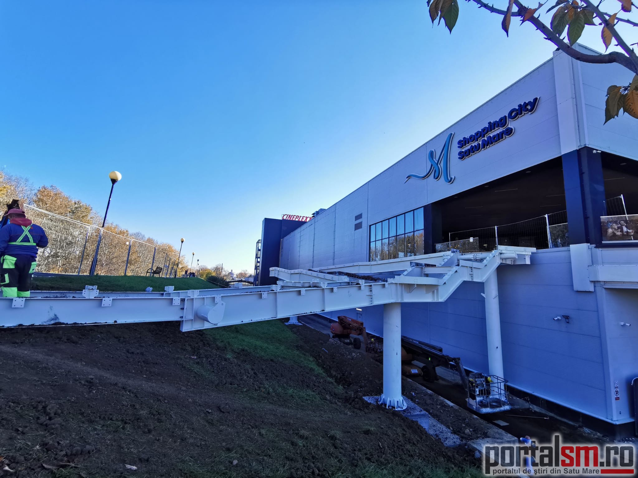 Pasarela dintre digul Someșului și Shopping City Satu Mare prinde contur: lucrările avansează vizibil. Pasarela pietonală care va face legătura între Shopping City Satu Mare și digul Someșului începe să prindă formă. La aproape două luni de la demararea lucrărilor, structura metalică este deja vizibilă, iar echipele de muncitori lucrează intens pentru a avansa în grafic.
