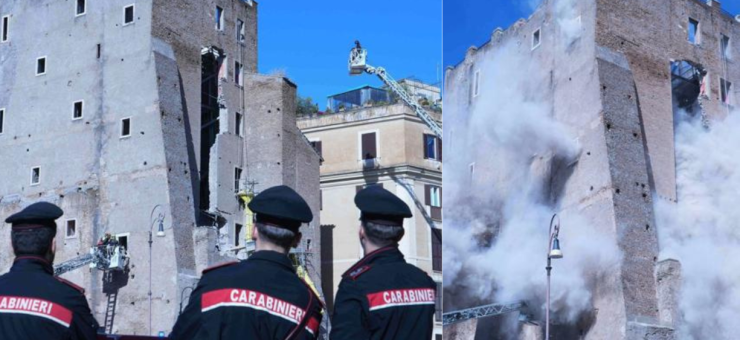 FOTO/VIDEO. Turn medieval prăbușit la Roma. Doi români răniți; unul a fost prins sub dărâmături