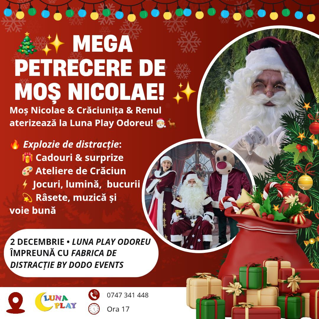 Petrecere de poveste Luna Play Odoreu: Moșul, Crăciunița și renul sosesc cu daruri și distracție! Copiii din județul Satu Mare și din împrejurimi sunt așteptați marți, 2 decembrie 2025, la o petrecere de neuitat dedicată sosirii lui Moș Nicolae. Evenimentul este organizat de Luna Play Odoreu, în parteneriat cu Fabrica de Distracție by DoDo Events, și promite o adevărată “explozie de distracție”, într-o atmosferă de sărbătoare.