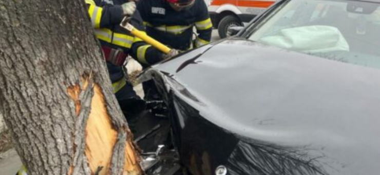 Un șofer a intrat cu mașina într-un copac, în municipiul Satu Mare. În urma evenimentului rutier, două persoane au ajuns la spital.