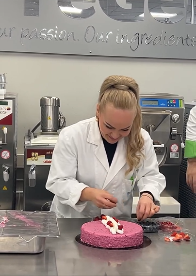 În cadrul cursului, Victorina a avut ocazia să lucreze direct în laboratoarele PreGel, alături de specialiști internaționali. A învățat rețete noi, a testat tehnologii moderne și a aprofundat standardele stricte privind siguranța alimentară.