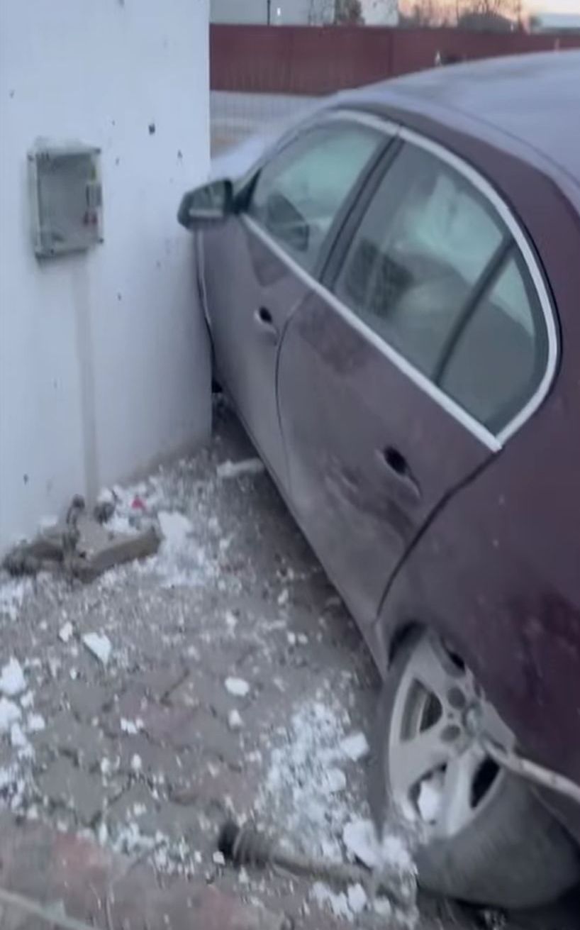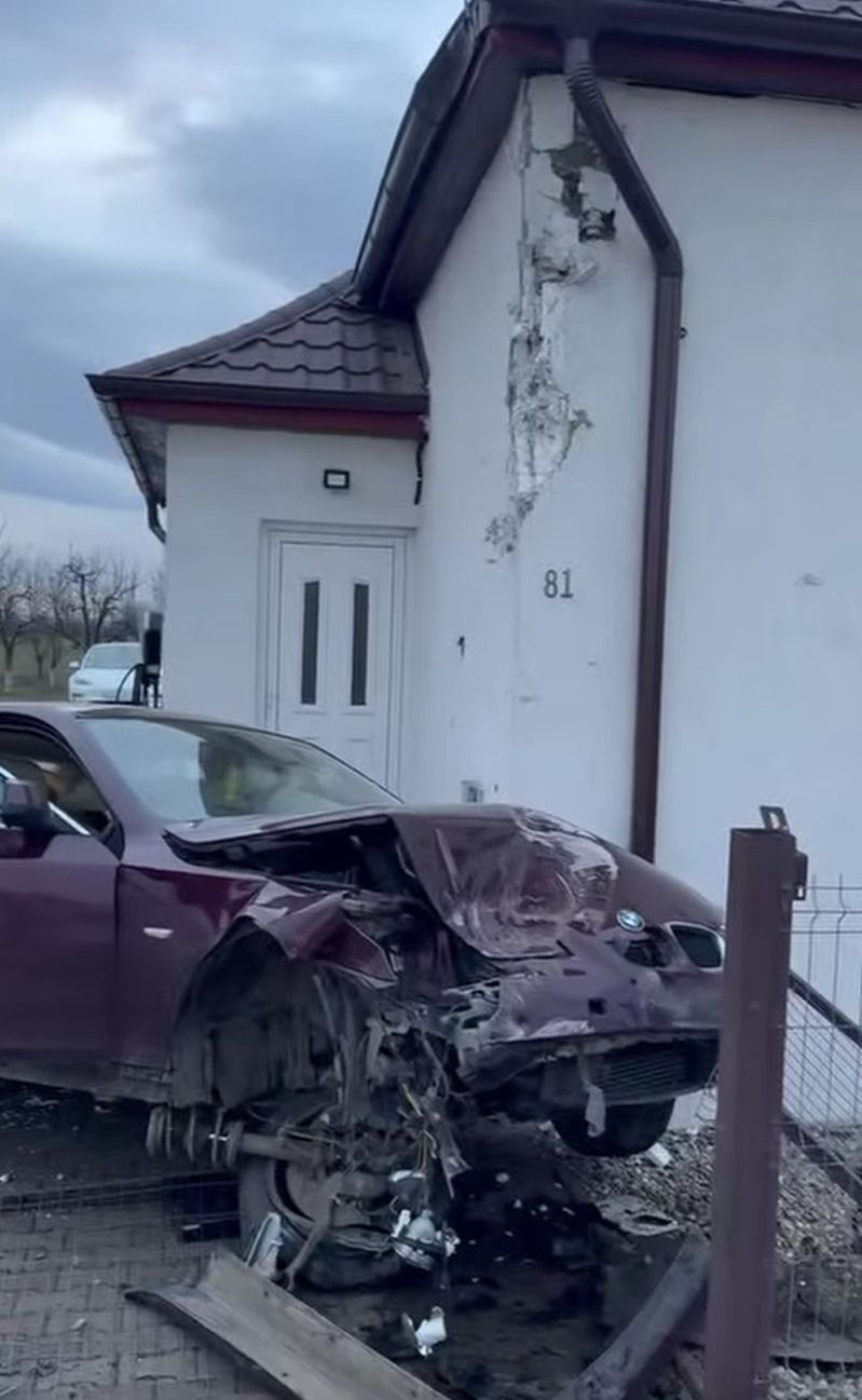 VIDEO. Accident de Crăciun. Un bombardier a zburat cu BMW-ul într-o casă