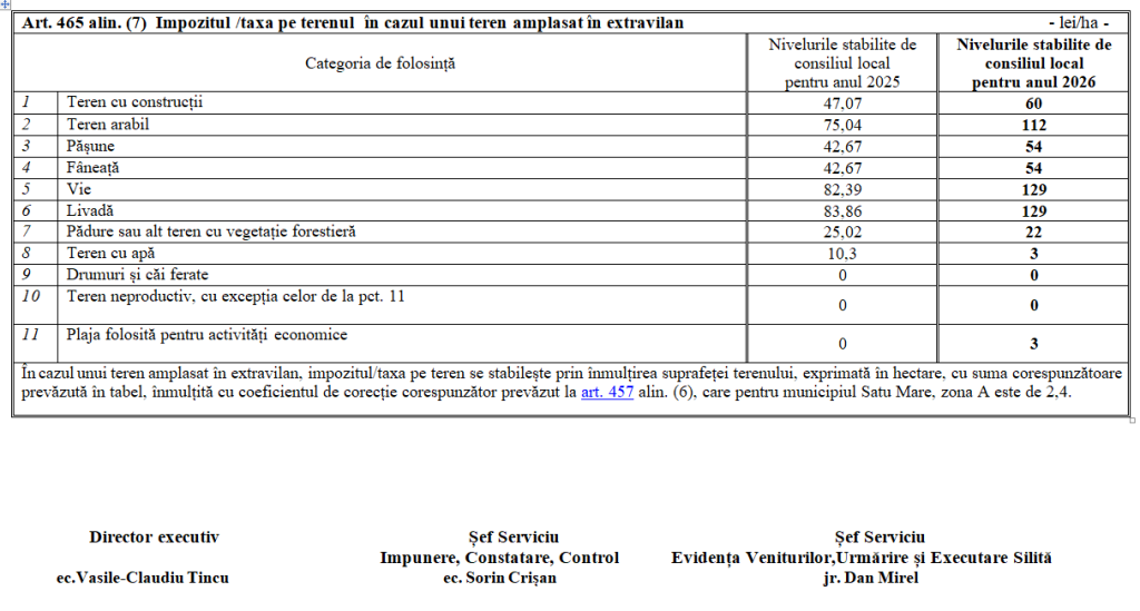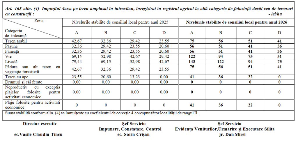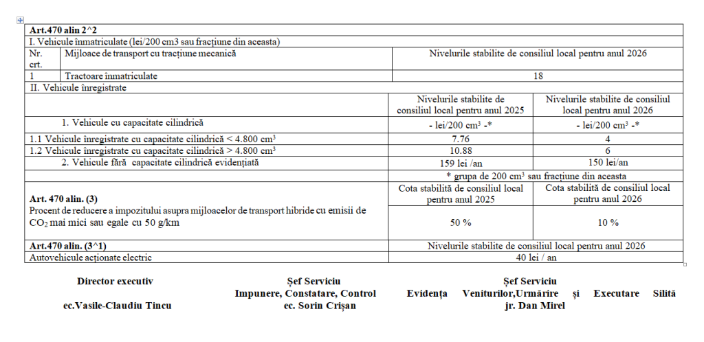 Decizia a fost luată în baza Legii nr. 239/2025 și a OUG nr. 78/2025, acte normative care obligă autoritățile locale să actualizeze valorile impozabile pentru anul 2026. Proiectul nu a primit observații din partea cetățenilor în perioada de dezbatere publică.