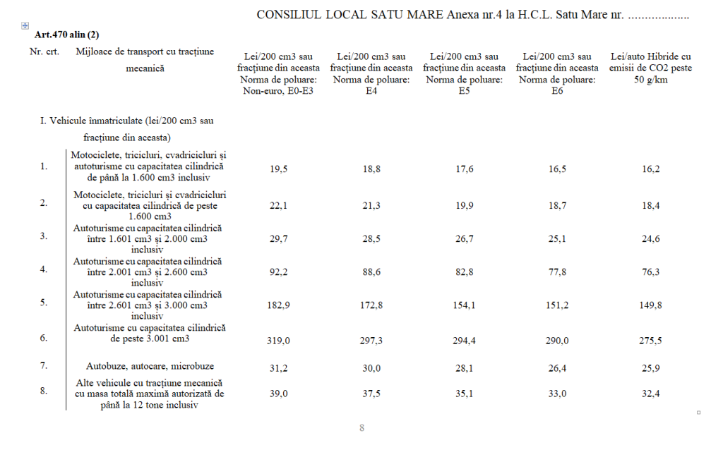 Mașini peste 3.000 cmc: până la 319 lei/200 cmc.