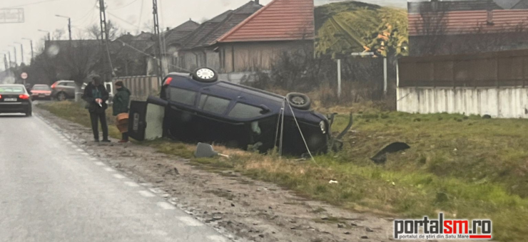 Evenimentul rutier s-a produs în localitatea Orașu Nou din județul Satu Mare, potrivit informațiilor PortalSM. Un șofer aflat la volanul unui autoturism ar fi pierdut controlul, a ieșit de pe carosabil și s-a răsturnat în șanțul de pe marginea drumului.