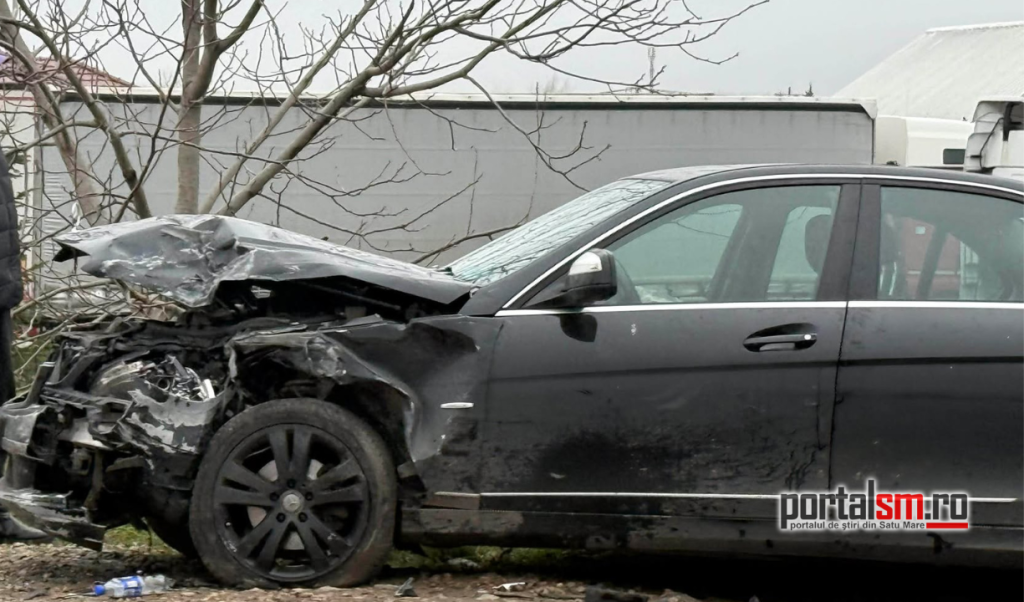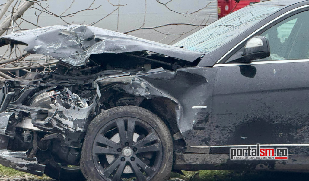 Accidentul s-a produs sâmbătă, 13 decembrie, pe drumul Odoreului din municipiul Satu Mare. Impactul dintre cele două vehicule a fost extrem de puternic, iar potrivit primelor informații cel puțin o persoană ar fi fost rănită.