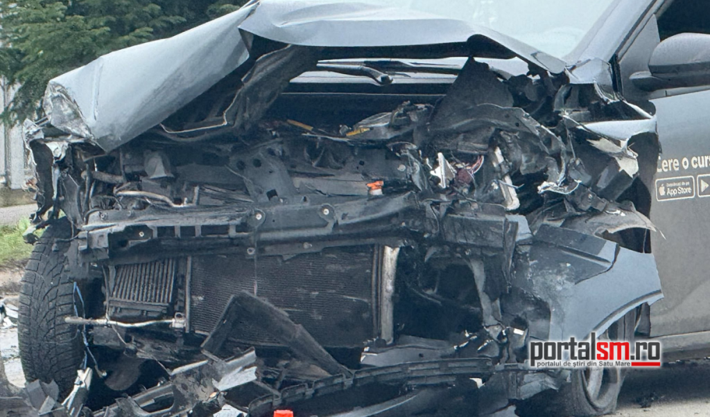 FOTO. Accident grav, sâmbătă, în Satu Mare: impact violent între o mașină Bolt și un alt autoturism