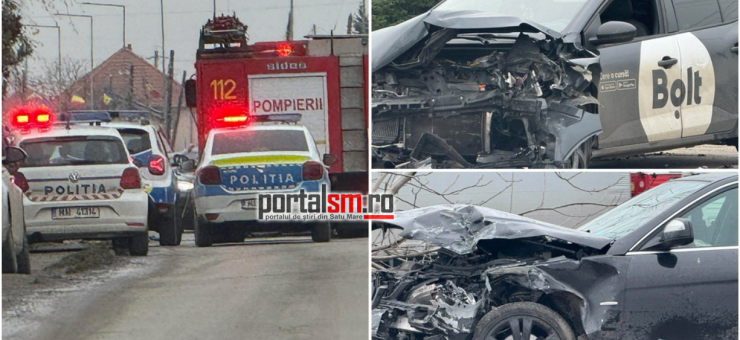 FOTO. Accident grav, sâmbătă, în Satu Mare: impact violent între o mașină Bolt și un alt autoturism