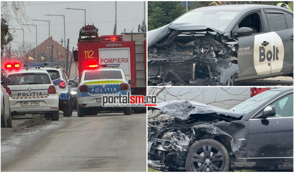 Accident grav, sâmbătă, în municipiul Satu Mare, după ce o mașină Bolt și un alt autoturism au intrat în coliziune.