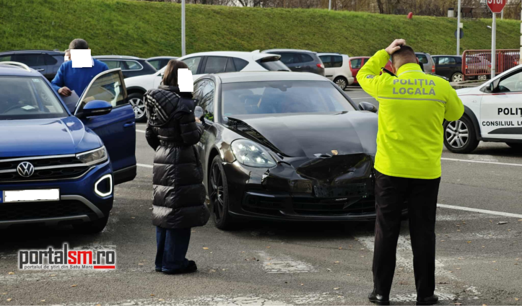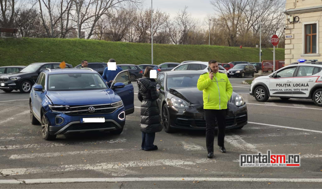 Un autoturism marca Porsche a fost implicat într-un accident, marți, în municipiul Satu Mare. Bolidul a fost lovit de un Volkswagen.