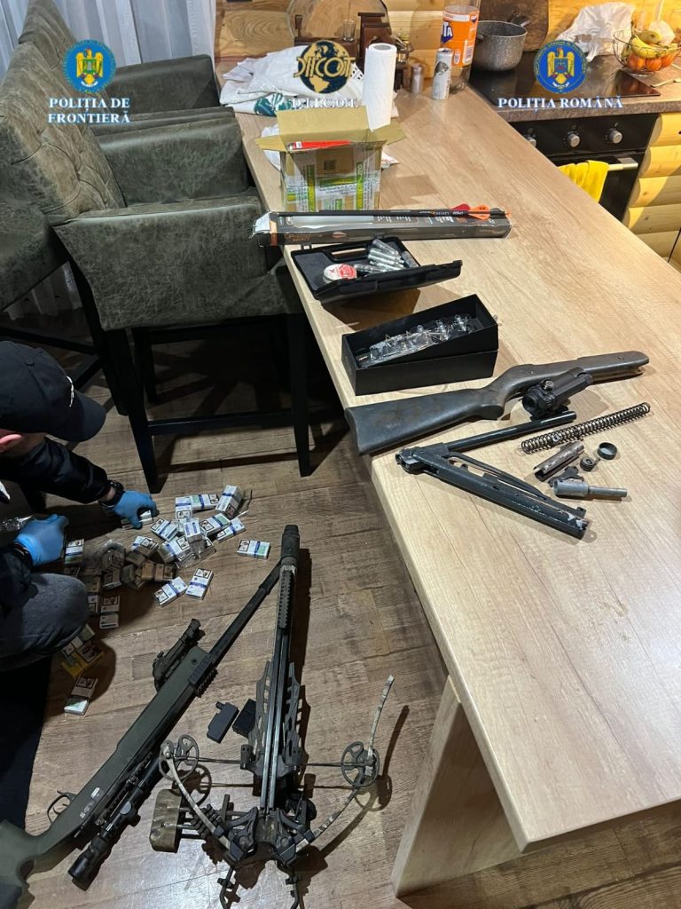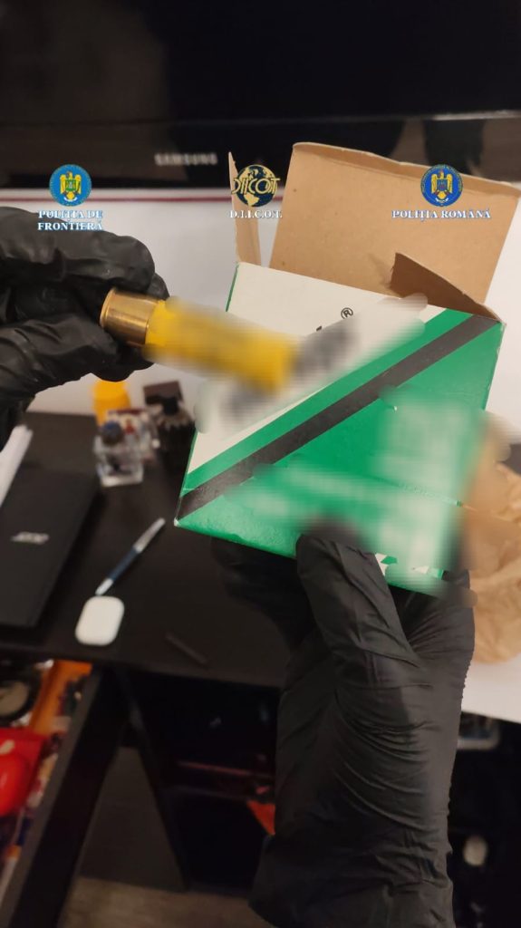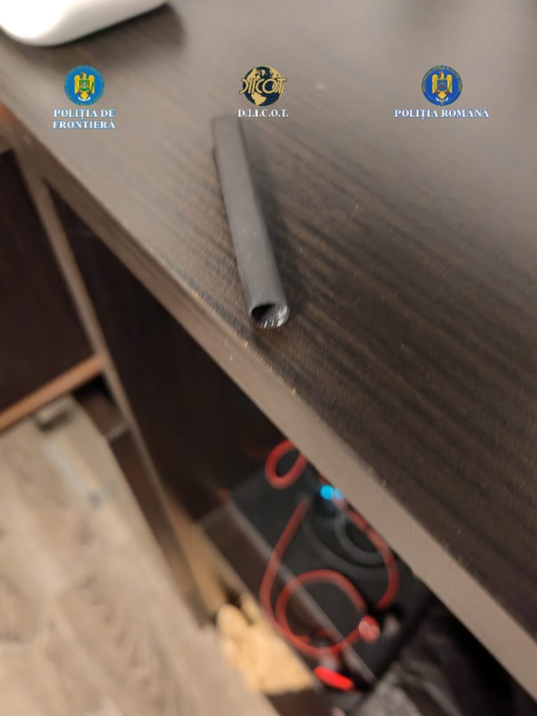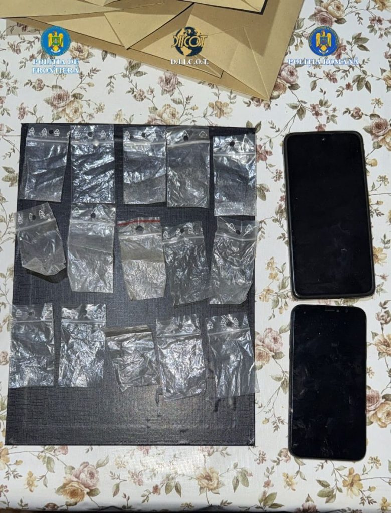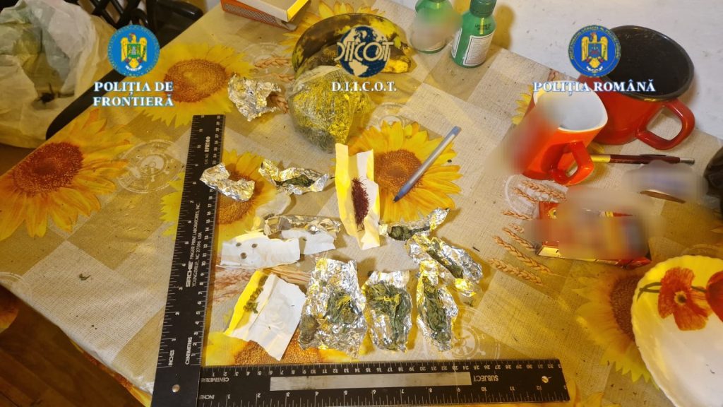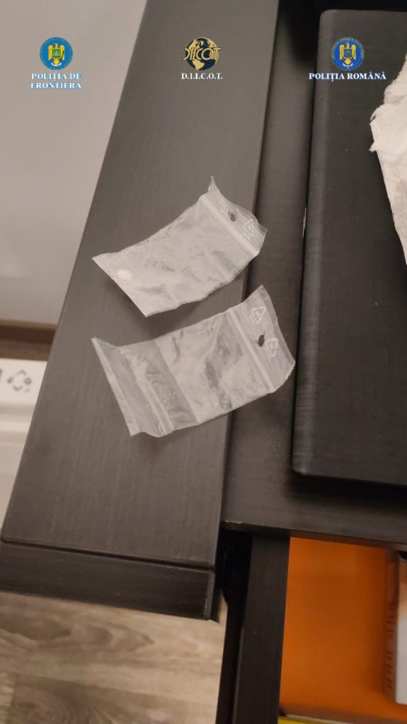 În urma celor 16 percheziții domiciliare efectuate au fost găsite și ridicate mai multe plicuri autosigilante, pungi și folii conținând peste 500 grame substanță cristalină, mai multe doze de canabis, cinci plante canabis aflate în stadiu incipient de dezvoltare, semințe de canabis, obiecte purtând urme de substanță, mai multe articole pirotehnice, un revolver, o țeavă și un pat de pușcă, 25 de cartușe, o pușcă airsoft cu lunetă, sumele de 13.300 euro, 31.000 lei, peste 300 de bancnote în cupiură de 50 și 20 euro susceptibil a fi falsificate, precum și alte mijloace de probă.