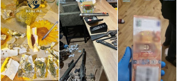În urma celor 16 percheziții domiciliare efectuate au fost găsite și ridicate mai multe plicuri autosigilante, pungi și folii conținând peste 500 grame substanță cristalină, mai multe doze de canabis, cinci plante canabis aflate în stadiu incipient de dezvoltare, semințe de canabis, obiecte purtând urme de substanță, mai multe articole pirotehnice, un revolver, o țeavă și un pat de pușcă, 25 de cartușe, o pușcă airsoft cu lunetă, sumele de 13.300 euro, 31.000 lei, peste 300 de bancnote în cupiură de 50 și 20 euro susceptibil a fi falsificate, precum și alte mijloace de probă.