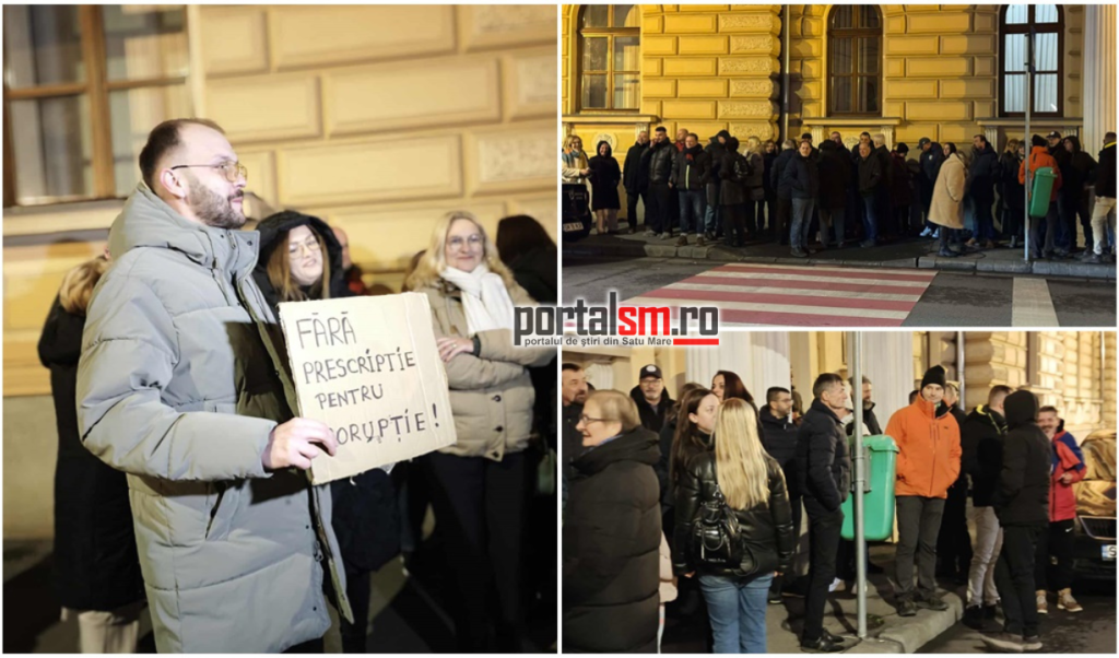 Protest la Satu Mare! Sâmbătă, 13 decembrie 2025, începând cu ora 17:00, zeci de sătmăreni s-au adunat în fața Tribunalului Satu Mare, nemulțumiți de modul în care funcționează sistemul de justiție din România.