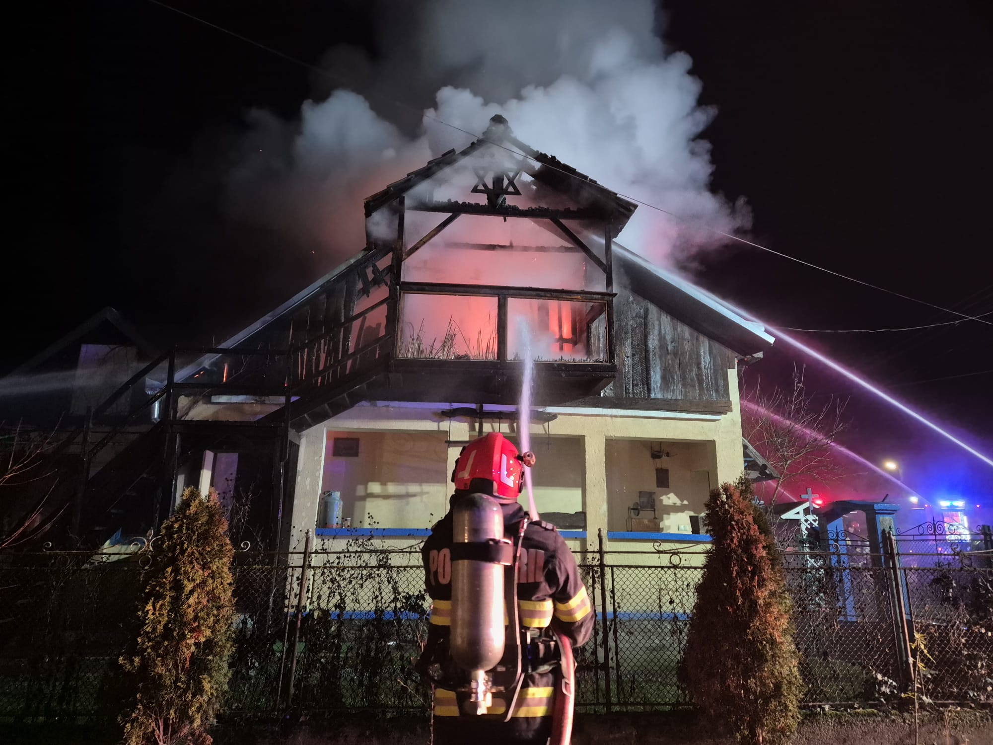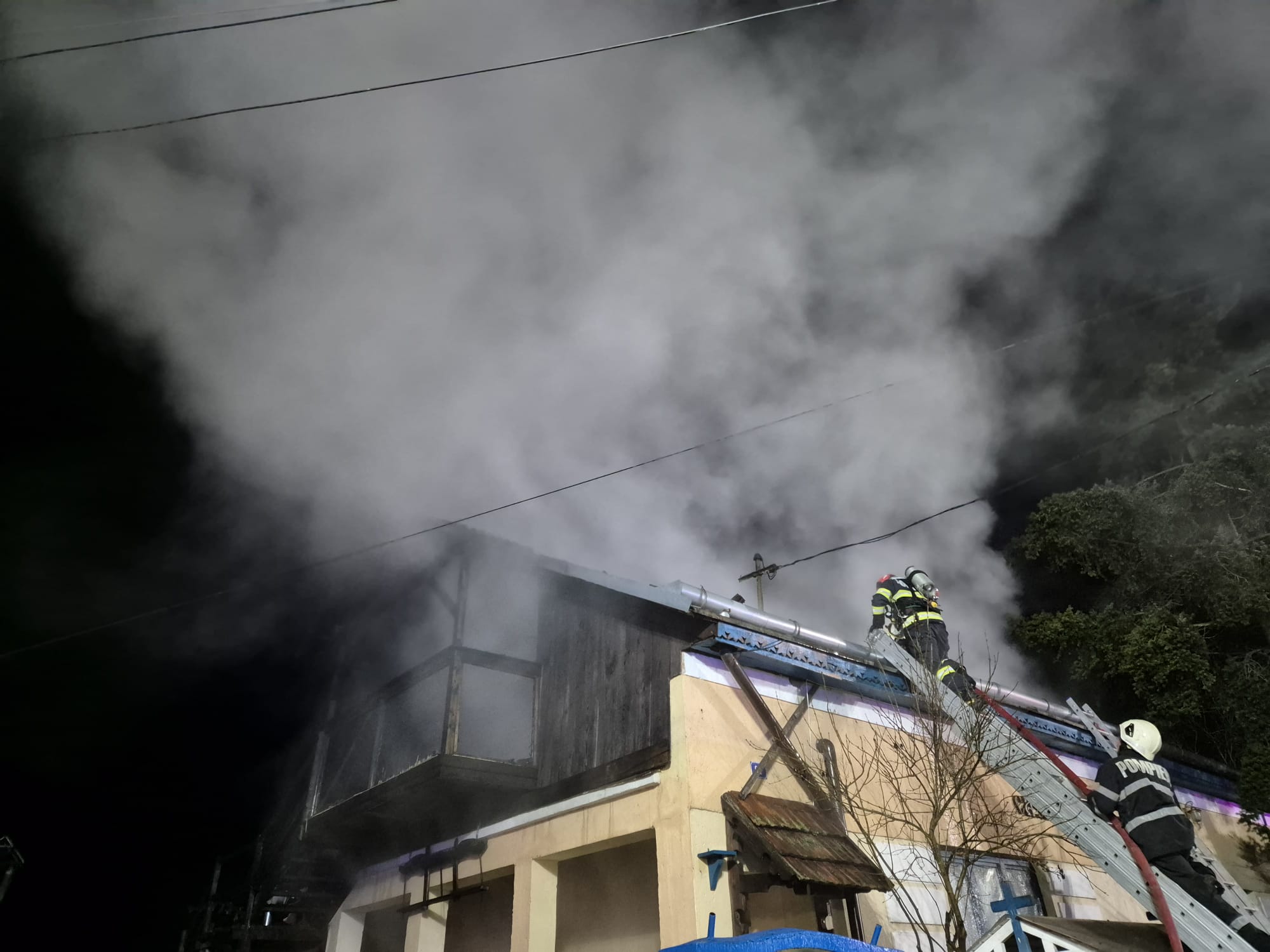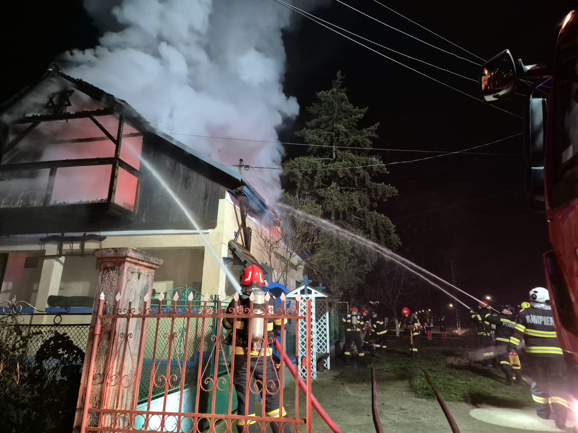 La momentul sosirii forțelor de intervenție, incendiul se manifesta intens la nivelul acoperișului.