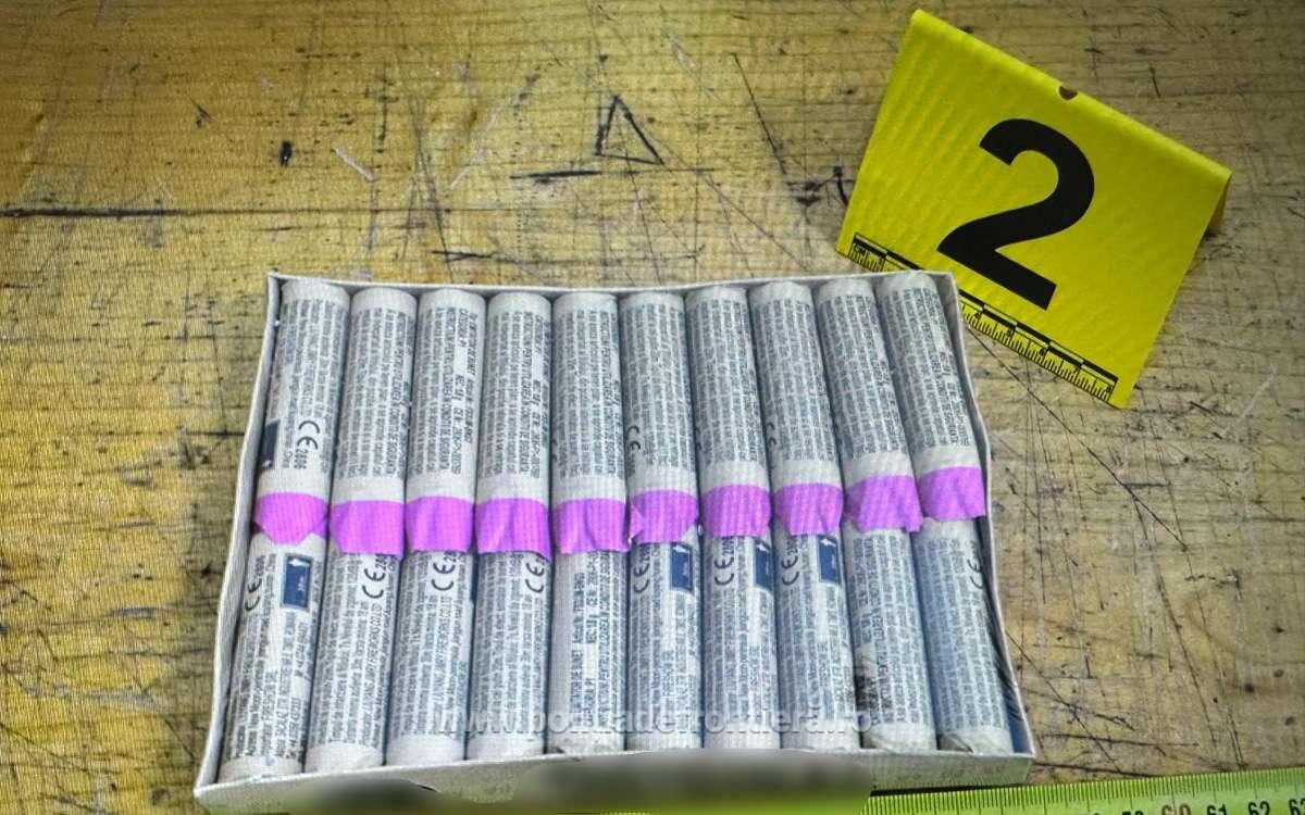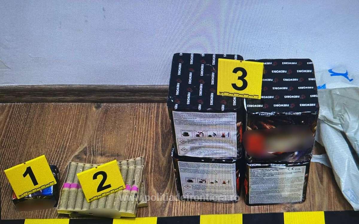 Câteva ore mai târziu, a fost oprit un alt cetățean român de 35 de ani, iar în urma controlului efectuat de polițiști, într-o sacoșă a fost decoperită cantitatea de 146 de bucăți de articole pirotehnice.