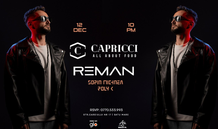 „Nopțile Capricci” revin în forță: REMAN aduce vibe-uri afro și distracție maximă la Satu Mare! Satu Mare se pregătește pentru o noapte incendiară! Pe 12 decembrie, de la ora 22:00, Restaurant Capricci din Shopping City devine locul unde distracția atinge cote maxime, odată cu revenirea mult așteptatelor „Nopți Capricci”.