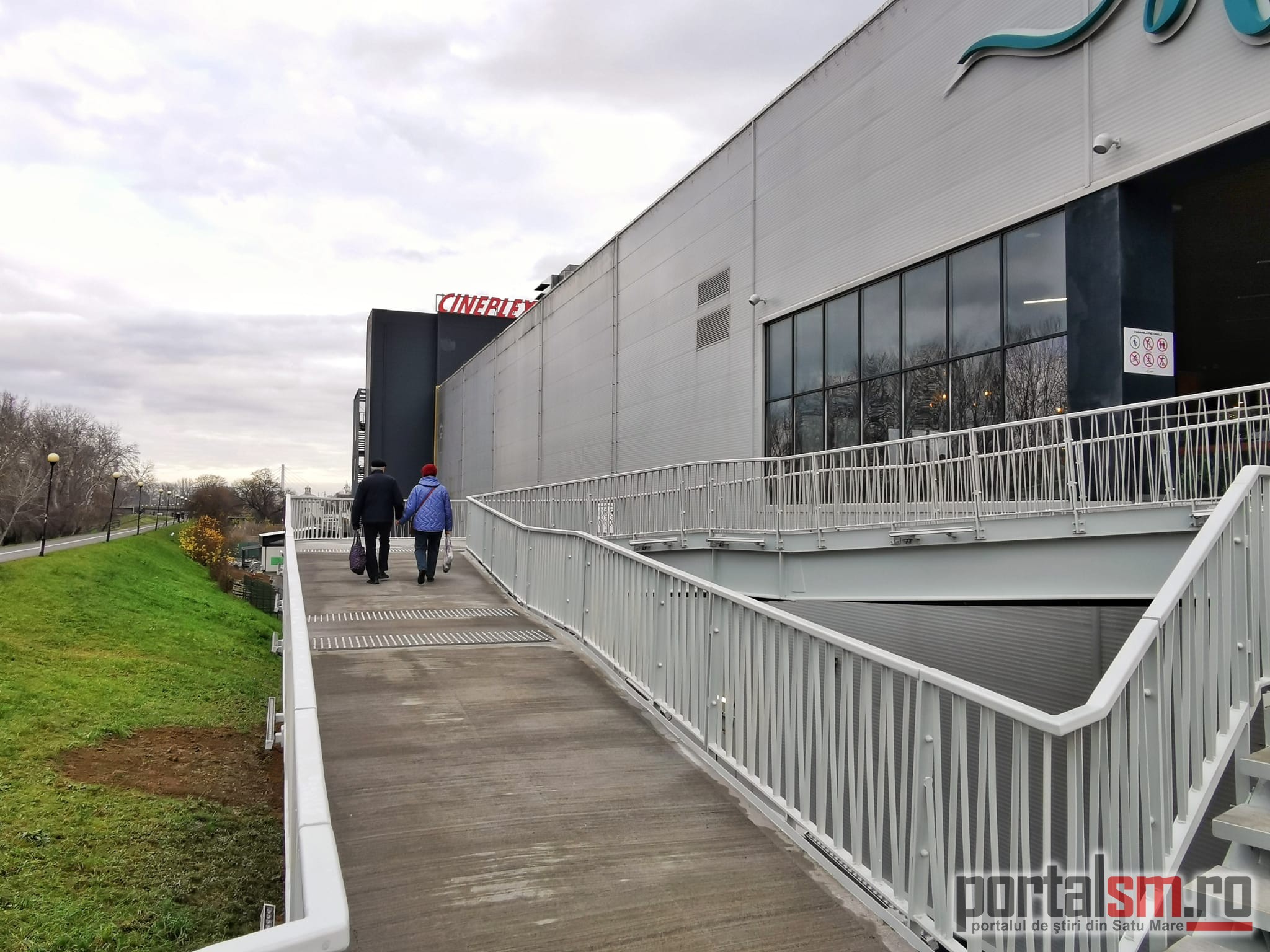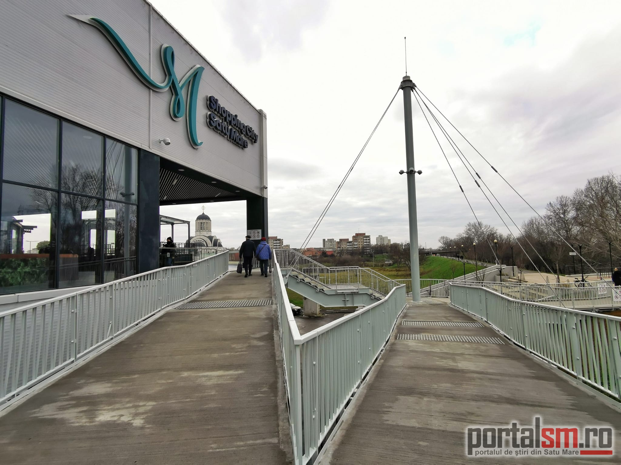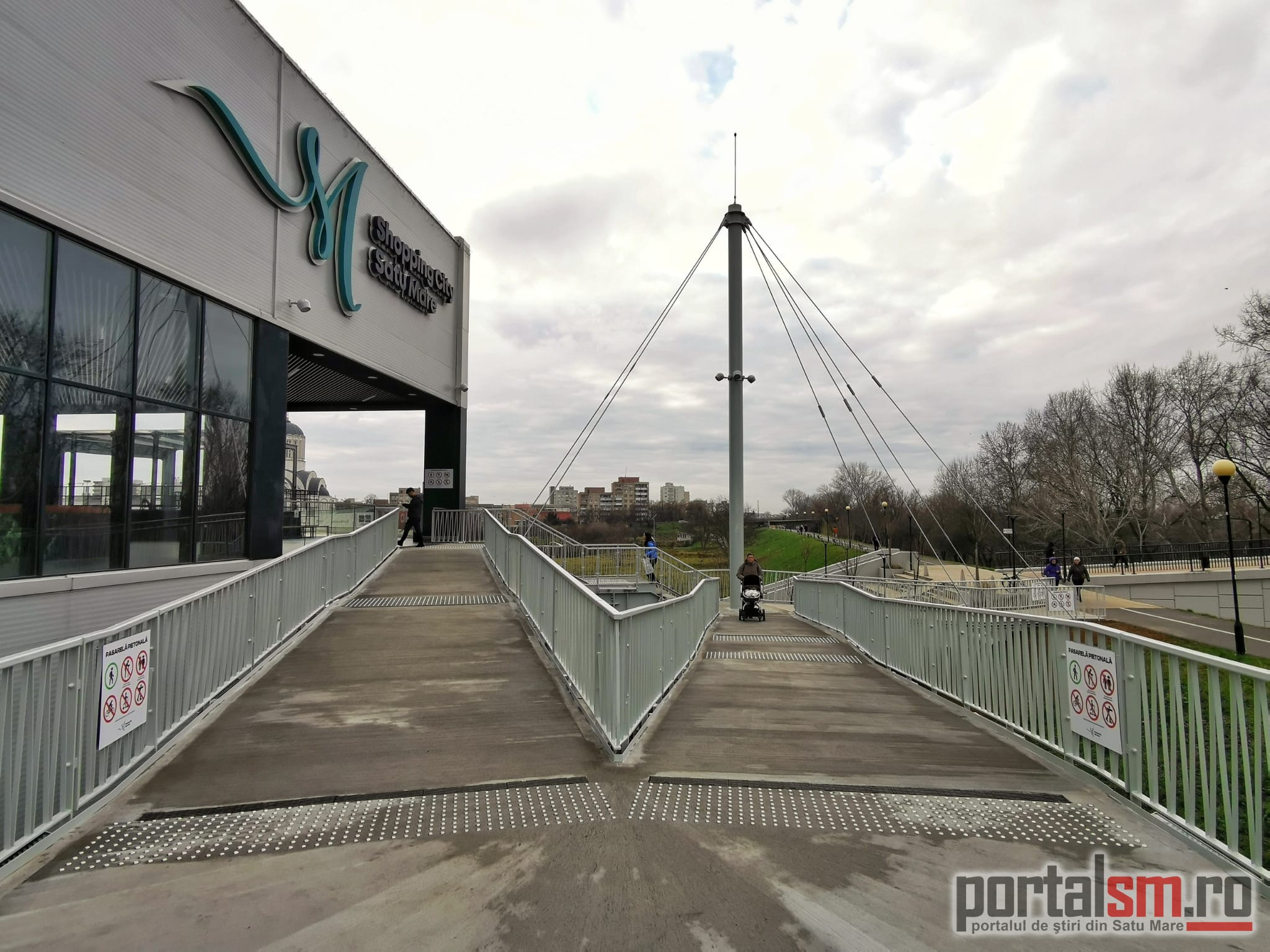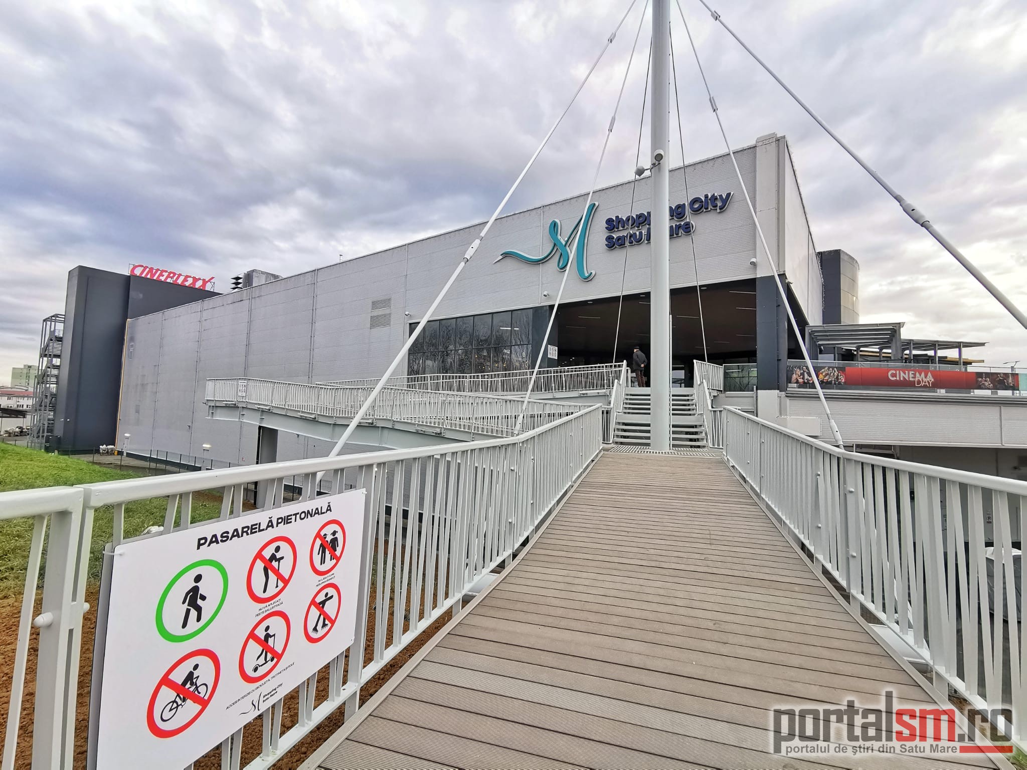 Pasarela de la mall spre digul Someșului, finalizată și deschisă pietonilor. Pasarela pietonală care leagă digul Someșului de Shopping City Satu Mare a fost finalizată și este deja folosită de sătmăreni. Investiția, realizată de dezvoltatorul centrului comercial, se ridică la peste 735.000 de lei și are rolul de a facilita accesul pietonal între malul râului și zona comercială.