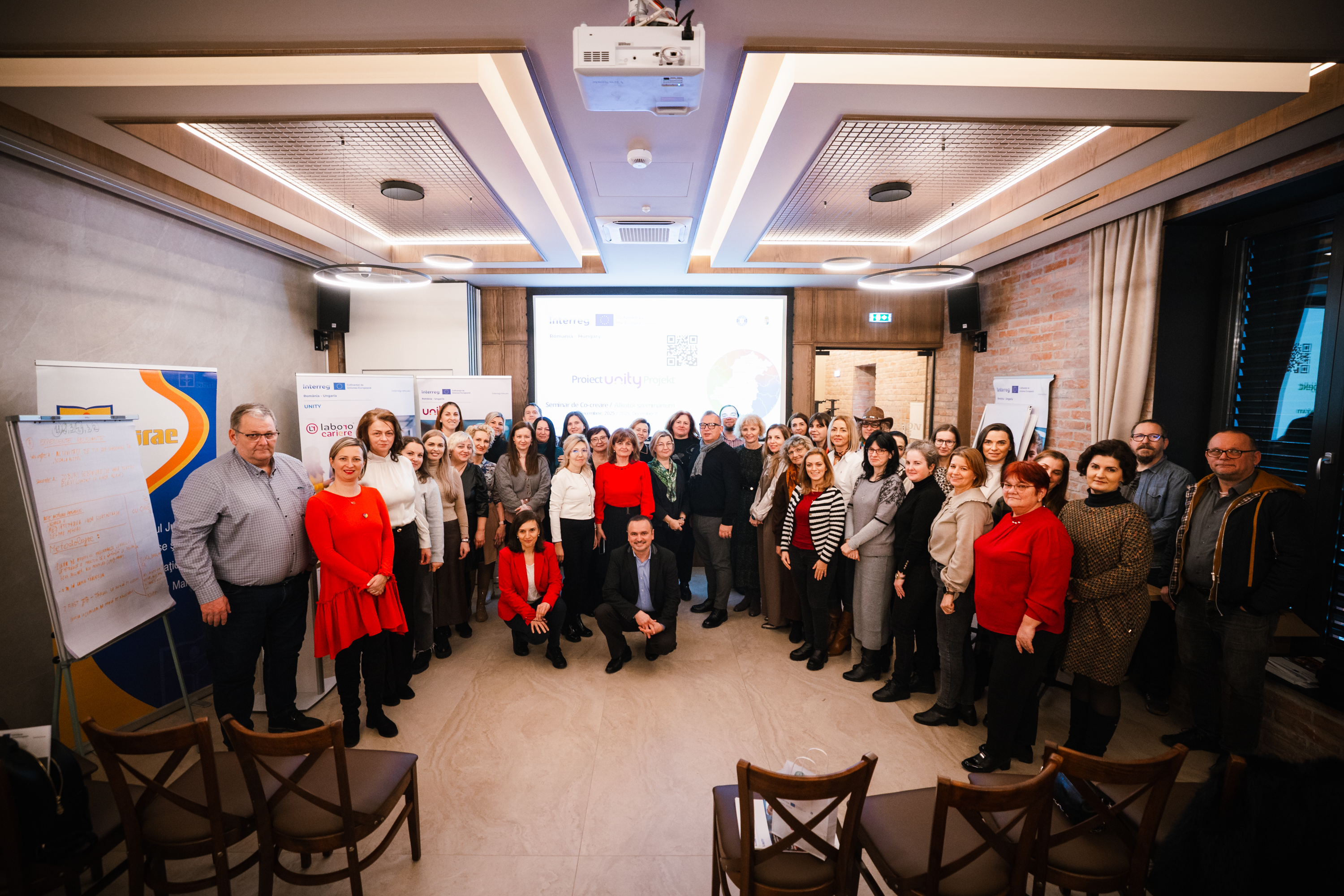 Luni, 8 decembrie 2025, a avut loc Seminarul transfrontalier de Co-creare organizat în cadrul proiectului UNITY – Fostering sustainable cross-border cooperation for a more effective support of youth career guidance, reunind profesori-consilieri, reprezentanți ai mediului educațional, economic și ai sectorului asociativ din România și Ungaria. Evenimentul s-a desfășurat la Restaurantul No Pardon din Satu Mare.