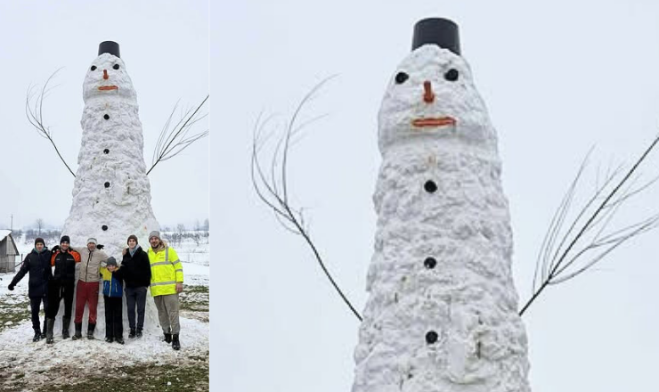 Un om de zăpadă uriaș, care măsoară aproape 6 metri înălțime, a devenit atracția principală în comuna Lăpuș, din județul Maramureș. Construit cu multă răbdare și determinare de un grup de tineri din Lăpușul Românesc, gigantul din zăpadă a fost ridicat în doar două zile.