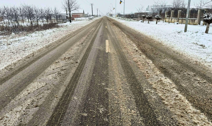 Imaginile surprinse arată un drum pe care aderența este redusă, ceea ce crește riscul de accidente. Șoferii care tranzitează această rută sunt sfătuiți să adapteze viteza la condițiile de drum și să circule cu prudență.