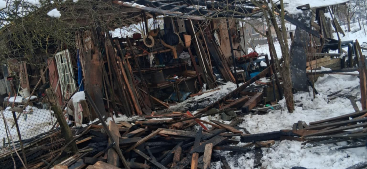 FOTO. Anexă cuprinsă de flăcări în județul Satu Mare. O familie a rămas fără lemne pentru iarnă