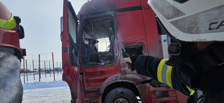 Pompierii militari au intervenit, luni, 12 ianuarie, pentru stingerea unui incendiu izbucnit la cabina unui TIR, pe strada Fabricii. La sosirea echipajelor profesioniste, șoferul autocamionului, împreună cu alți conducători auto aflați în zonă, acționau pentru limitarea incendiului, utilizând stingătoare.