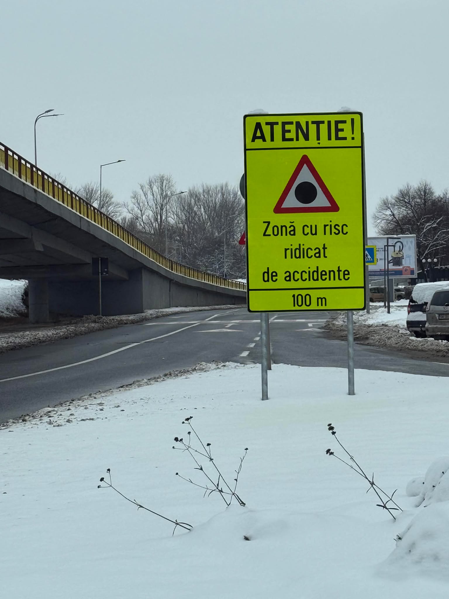 Un nou indicator rutier a fost montat pe Bulevardul Transilvania, în apropiere de intersecția cu Strada Aurel Popp, chiar lângă coborârea de sub pod. Panoul, foarte vizibil datorită culorii galben fosforescent, îi avertizează pe șoferi că intră într-o „zonă cu risc ridicat de accidente”, pe o distanță de 100 de metri.